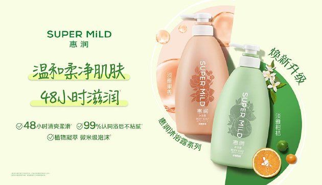 SUPER MiLD 惠润作为FineToday 菲婷丝集团旗下专研植物洗护的代表品牌,以安心的自然植物配方让秀发和肌肤自由呼吸,传递绿色健康的经营理念。惠润进入中国市场已有超过二十年的历史,打造了深受消费者喜爱的洗护系列。现在,惠润核心产品柔净洗护系列和沐浴露系列焕新升级,以全新形象强化温和头皮护理的品牌定位。